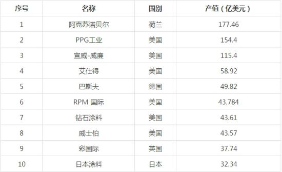 全球顶级涂料品牌排行榜 阿克苏诺贝尔居榜首