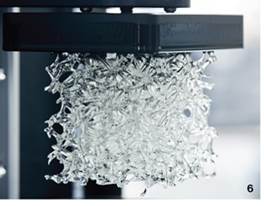 碳3D打印技术中的液体树脂处于窗口的底部。窗口像隐形眼镜一样可以透水、透光、透氧气,这就可以抑制聚合物的化学反应,防止聚合物在底部的固化。当碳3D技术进行连续印刷时,3D打印技术的整个过程就会快很多,由此产生的材料强度也会更高。 DeSimone说:“看起来,整个过程就像是在水中生长起来一样。”