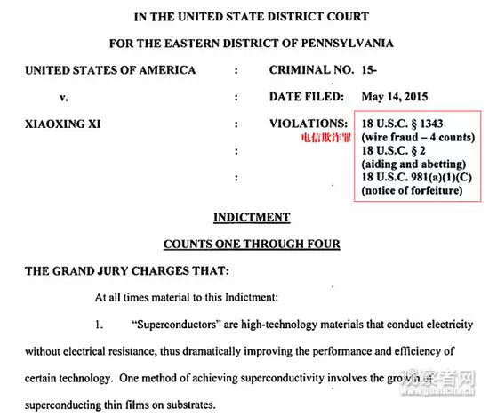 (观察者网讯)美国天普大学华裔教授、物理系主任郗小星遭美国检方起诉。观察者网调查发现,这一事件颇为蹊跷。虽然西方媒体炒作郗小星“非法输送美 国敏感的国防科技给中国企业和中国政府”,但美国检方实际上既没有像指控华裔水利专家Sherry Chen一样,冠以“窃密罪”,也没有像指控天津大学教授一样,冠以“商业间谍罪”。