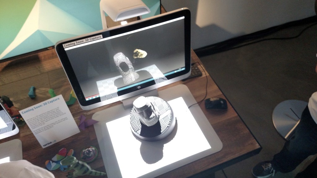 惠普的Sprout将会使用英特尔3D相机、3D捕捉软件和惠普专有的3D捕捉。惠普的3D捕捉是一个转盘,该转盘会成为扫描对象的平台。该3D捕捉的建立是为了确保物体的各个方面都能够被很好的捕捉。3D捕捉允许使用者能够创建一个3D数字模型,并能够进行叠加和修饰。该软件将会以当前惠普3D Snapshot软件的更新版本发放。Sprout的下一个免费更新版本将包括一个3D扫描的APP,在2D世界摇摇欲坠而3D市场逐渐兴起时,这可谓是令人兴奋的飞跃。