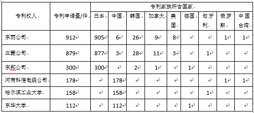 如表2所示,在碳纤维技术领域,日本企业表现强劲。排名前18的机构中,日本企业就占据了半壁江山。其中排名前3位全是日本企业,分别是东丽公司、三菱公司和东邦公司,三者的专利数量远多于其他企业和高校。排名前18的机构中,还有2家美国企业、2家韩国企业、1家德国企业。值得一提的是1家中国企业和2家中国高校也进入了该项排名,说明中国相关机构在碳纤维技术领域已经开始占据一席之地。