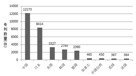 图2 主要国家和地区专利数量分布,美编:专利数量/件