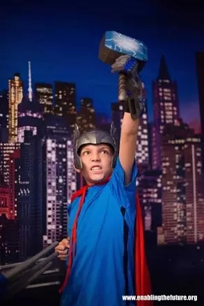 一位年轻的索尔正用他打印的假肢紧抓着战锤