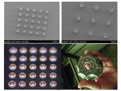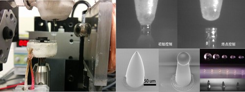 中科院宁波工研院增材制造研究团队,针对航天、汽车发动机和医疗等领域难加工、个性化零部件直接成型产业对多品种、高性能3D打印材料的需求,结合我国3D打印材料规模化生产和成型所面临的关键问题,以建立增材制造专用材料生产通用化和专业化为目标,围绕3D打印用高性能高分子和陶瓷材料进行了深入研究。近期,该团队针对工艺品和创意展现等个人、桌面级3D打印市场,研发了玻璃熔融沉积成形材料及工艺技术,并针对玻璃高温熔融成型工艺开发了耐高温高精度Al2O3陶瓷喷嘴及桌面级成型装备(原型),通过优化3D打印工艺,解决了高工况温度和工艺稳定性,已成功实现了多种微结构成型,特征尺寸达到50μm以下。