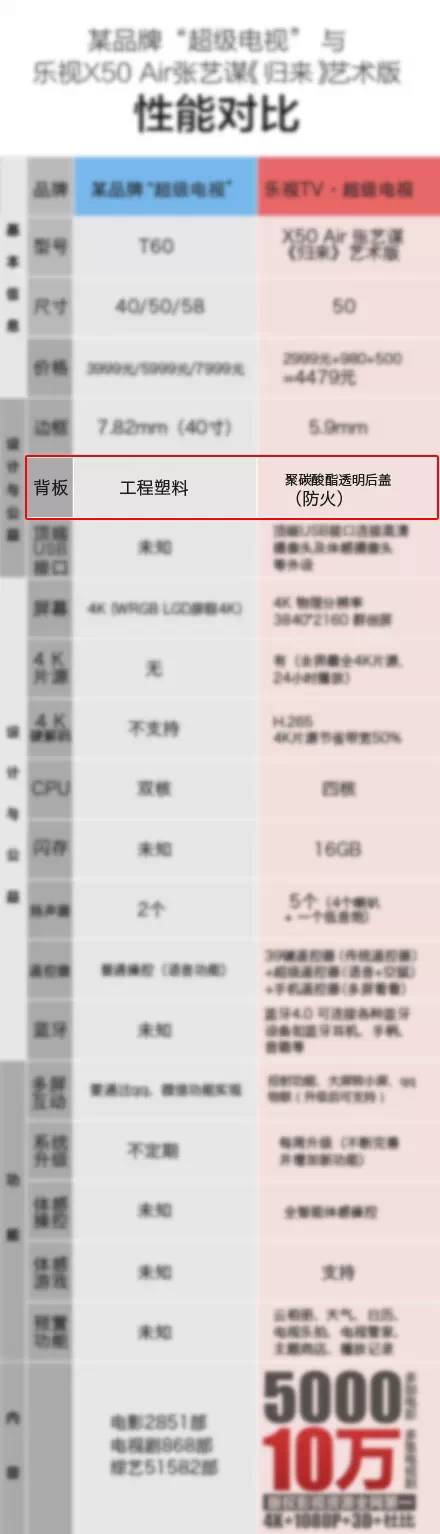这是康佳发布T60超级电视时,某品牌电视官方微博更新的所谓“性能对比”图,其中有一项背板对比中我们不难发现,自称其品牌的电视背板是使用“聚碳酸酯透明后盖(防火)”而把康佳的背板部分写成工程塑料(其实我们使用的是PS这种注塑材料,并非描述的工程塑料),那么问题来了,作为一名求知心态极强、工作极其严谨的工业设计师,我必须揪出这个问题来说道说道了。