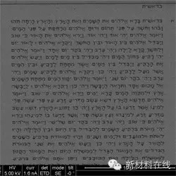 这是一页通过电子显微镜放大看到的希伯莱文纳米圣经。以色列的研究人员把整本圣经放到了0.5平方毫米的硅片上。(来源:Getty Image)