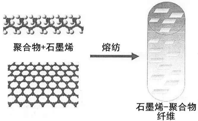 制 法是采用DSM公司生产的双螺杆微型挤出机(XPlore Micro Compounder),将最高为30%的石墨烯添加入聚合物中,于200℃以上进行熔纺,喷丝孔有0.25、0.5和1.25mm,券速为 10~200m/min。图7示出熔纺前后的分子结构变化,所用聚合物主要是聚丙烯(PP)。