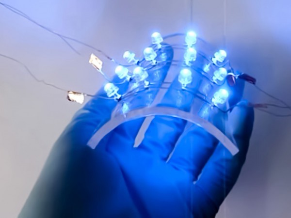 现在研究人员发明出一种超薄、高导电率的织物电路,这种织物电路经过如瑜伽服般的弯曲和伸展后依然具有高导电率。这种模拟弹性纤维制成的织物电路由包裹棉纱的弹性合成物——聚氨酯制成。将弹性织物浸渍在银纳米颗粒中,获得导电性后,利用液体硅胶密封。据发表在本月ACS Nano上的研究报告称,这种纳米银线的弹性和氨纶一样好,伸长率可以达到500%,同时保留高的导电率(688西门子每厘米)。和之前尝试用石墨制成的纳米线相比,其电导率和灵活性分别是后者的34倍和5倍。经过1000次弯曲(或者缠绕手指)后,纳米线依然保持较高的导电性。
