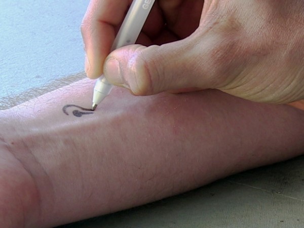 其实这还不算什么,你甚至可以直接将墨水写在皮肤表面进行测试,墨水还可以减轻扎破手指的刺痛感。