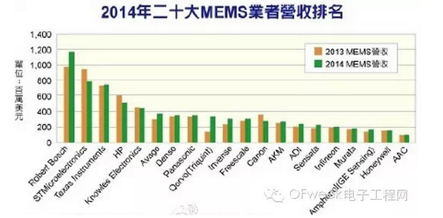 盘点:2014营收全球前十MEMS厂商