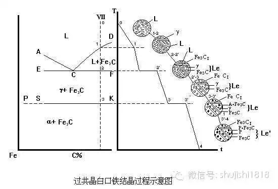 L4.3---- A2.11+Fe3C(共晶渗碳体)——Le4.3 高温莱氏体 Le,Ld
