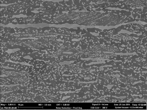 高强度钢退火显微结构。退火过程在钢基体中的精细的FeAl-B2型结晶物。该样品在900摄氏度退火15分钟。