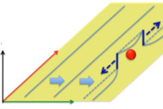 示意图中的淡蓝线代表钛中移动的缺陷或位错。位错和氧原子(红色原子)的相互作用会产生新的位错,如深蓝线。