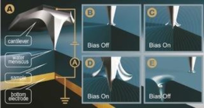 研究人员使用电和水来控制离子表面的摩擦。由于水形成的纳米电极能渗透到样品表面,从而可以增加或减少摩擦。