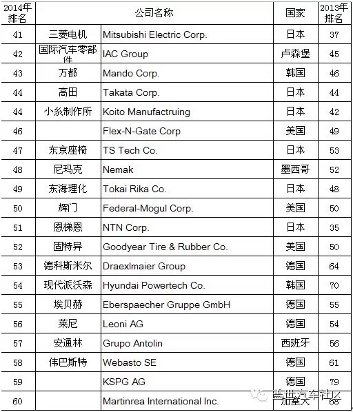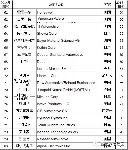 2014年全球汽车零部件供应商百强排名,为何国人看了泪奔!