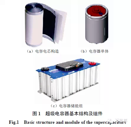 超级电容器是介于传统电容器和二次电池之间的一种电化学储能装置,其容量可达几百甚至上千法拉。自1975 年Conway 首次提出法拉第准电容的储能原理以来,超级电容器的研发已经得到了长足的发展,日本NEC、松下、本田、日立和美国Maxell 等公司开发出的小型超级电容器已开始推向市场,在小型移动电子设备、汽车能量回收等领域应用。法国SAFT 公司、韩国NESE 公司等也在进行超级电容器的研究和开发。美国的USMSC计划、日本的New Sunshine 计划和欧洲的PNGU计划均将超级电容器列入开发内容。我国将“超级电容器关键材料的研究和制备技术”列入到《国家中长期科学和技术发展纲要(2006— 2020 年)》,作为能源领域中的前沿技术之一。超级电容器作为一种新型电化学储能单元,具有容量大、功率密度高、免维护、对环境无污染、循环寿命长、使用温度范 围宽等优点,已在备用电源系统、便携式电子设备和电动汽车领域有广泛的应用。对于具有随机性和间歇性等特点的可再生能源发电,超级电容器应用于风力发电中 可以提高风电场的运行安全。超级电容器的基本构造与应用组件如图1 所示。