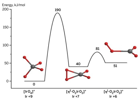 上图显示了不同价态的铱,分别检测到上述三个检测IrO4异构体活力,其中[IrO4]+。铱的+9氧化态(左)是最优异构体。