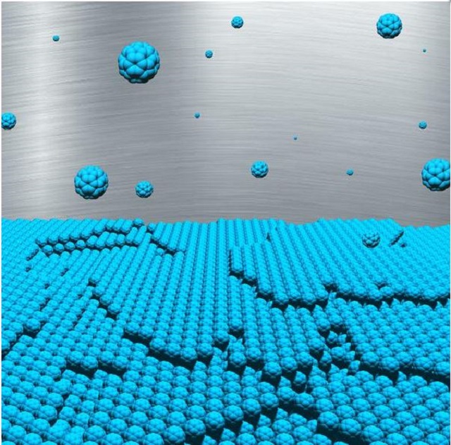 据国外媒体报道,来自柏林洪堡大学,蒂宾根大学,德国电子同步加速器(DESY)和柏林工业大学的研究人员使用PETRA III超亮X射线源,实时观察到了的足球状的碳分子的自组织生长成超平滑的层状结构。