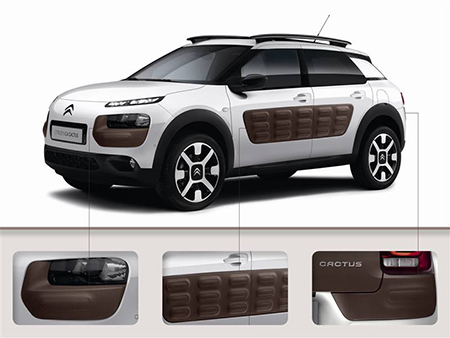 作为业内首家热塑性聚氨酯 (TPU) 生产商,巴斯夫成功对材料进行了优化,使其无需涂装即可用于汽车车身。法国汽车制造商标致雪铁龙集团将全新的 Elastollan® TPU 产品 AC 55D10 HPM(HPM 意为高性能材料)用于制造 Airbumps®,以保护雪铁龙 C4 Cactus 的车身。Airbumps® 是一种采用对比色的大型充气垫保险杠:它们被安装在车身两侧和前后,用以提供撞击和刮擦保护,同时赋予车身以独特外观。这种全球首创的保险杠是雪铁龙与供应商瑞士瑞好和巴斯夫多年合作开发的成果。瑞好和法国公司佛吉亚分别制造车身两侧和前后的 Airbumps®。