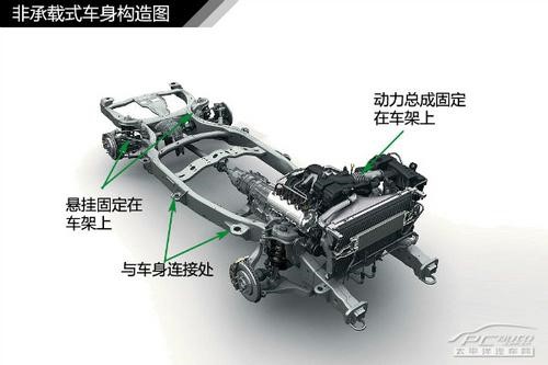 非承载式车身有根大梁贯穿整个车身结构,底盘的强度较高,抗颠簸性能好。就算车的四个车轮受力不均匀,也是由车架承受,不会传递到车身,所以车身不容易扭曲变形。
