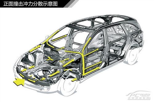 同样是为了保护驾乘室中的人员,在汽车受到撞击时,利用特殊设计的车身,将撞击力分散、转移,从而减少传递到驾乘室的撞击力,达到保护车内乘员的目的。