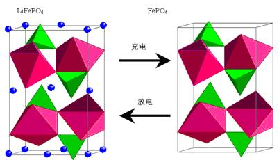图1.磷酸铁锂的橄榄石结构及锂离子嵌入脱出示意图