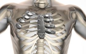 安装到患者身体上的3D打印胸骨和肋骨。图片由Anatomics提供。