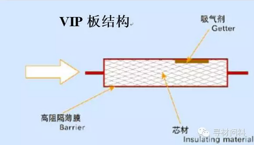 VIP板是近年出现的一种新型高效隔热材料,导热系数在0.005W/mK以下;它采用聚苯乙烯(PS)、聚氨酯泡沫、玻璃纤维等为芯材,内置气体吸附剂和干燥剂,在抽真空状态下双面用气体隔绝材料密封成板材;相较于使用聚氨酯发泡的保温材料,真空绝热板优良的隔热性能有利于节省更多的电量,其厚度较聚氨酯发泡大幅降低,可进一步释放有效容积20-30%。真空绝热板(VIP)技术的关键控制点有三项:真空度、高阻隔薄膜、抽真空后的封装。