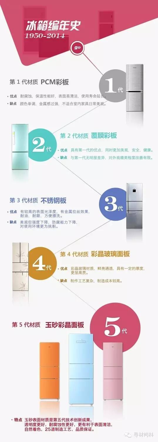 PCM为彩色预涂板材,表面为家电环保油漆,价格相对于VCM较为便宜,一般应用于冰箱侧板,此种板材不适用于高档冰箱的面板,由于板材的想对平整度较VCM差和颜色效果单一,因此主要是侧板的使用。