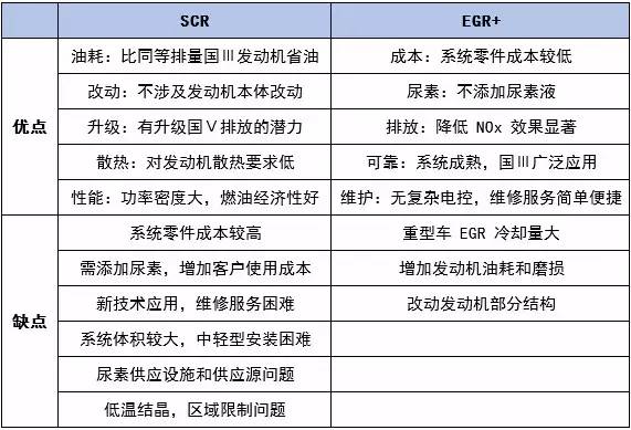 SCR 和 EGR+技术路线各有优缺点,这两种路线在国际上均被广泛应用,美国以 EGR 为主流路线,欧洲以 SCR 为主。