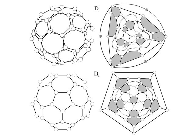 希望寻找超级芳香体能有更好的运气,比利时鲁汶大学(University of Leuven, Belgium)的ArnoutCeulemans和Ana SanzMatías等人仔细研究了C50的结构,C50是碳黑的质谱中峰强最高的代表之一。事实上,C50满足Andreas Hirsch的神奇电子技术规则——2(N + 1)2,除了电子结构应该完全填充球壳、整体笼形应该接近空芯球的要求之外,应该可以确定这种富勒烯是超级芳香体。