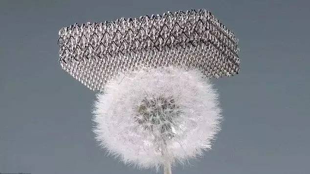 该结构所使用的材料名为微晶格,是一种由相互连接的空管道组成的3D开孔聚合物。每一根空管道都拥有比发丝细1000倍的管壁。这导致该结构轻巧务必,可以被置于一朵蒲公英之上。