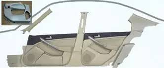 汽车内饰地毯与后备箱地毯类似,均分为分为主地毯和装饰性地毯两种,主地毯一般由塑料和化纤注塑而成,是整车出厂必备的零件之一;目前常用轿车地毯内饰件一般由面料层、中间骨架层和底料层构成,装饰性地毯和后备箱垫是集吸水、吸尘、去污、隔音、保护主机毯五大主要功能为一体的一种环保汽车内饰零部件。
