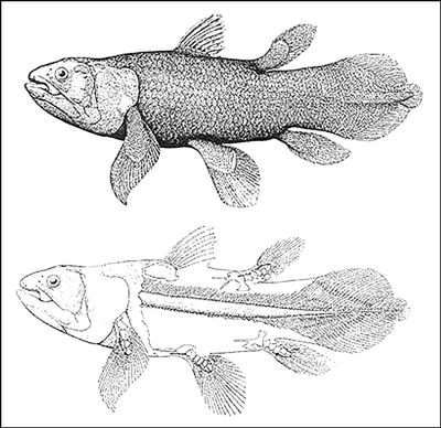 腔棘鱼是一种大型的肉鳍鱼,是现今还存活的最古老鱼类,但很长一段时间它都被认为在约6000万年前即已灭绝,直到1938年,人们才在南非的海边发现了还存活的一个物种——西印度洋矛尾鱼(Latimeria chalumnae),从此它们获得了“活化石”的称号。与已经变成化石的物种相比,矛尾鱼缺少一个典型的“钙化肺”,钙化肺被认为是一种对于浅水的适应特征,而且科学家一直不清楚的一点是:那些已经变成化石的物种,在当下腔棘鱼的身体结构中是否还有少许残余。