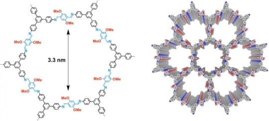 科学家们尝试设计并合成稳定的晶态多孔共价有机骨架材料。通过把电子供体基团合并到亚胺连接的苯环,他们发现极化亚胺键发生软化;这种电子效应降低了层间的排斥力并加强层间的相互作用,增加了共价有机骨架材料的稳定性。