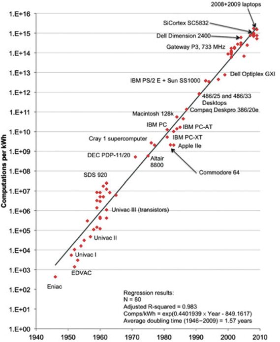 Koomey定律表明历史趋势对电效率的影响