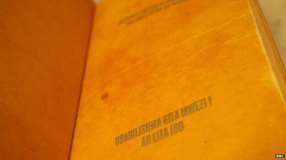 过滤书页上印着英语和其它语言版本的滤水方法及卫生知识。(图片来源:BBC)