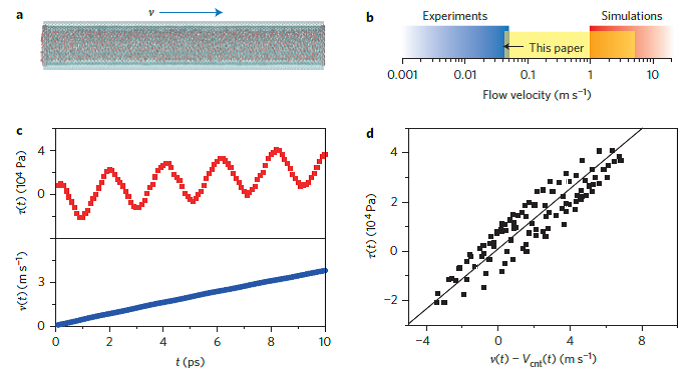 过去十年,纳米流体学领域的出现催生了很多重要的应用,包括水脱盐、超过滤和渗透能量转换等。大部分应用利用碳纳米管、氮化硼纳米管、石墨烯和石墨烯氧化物。特别是,弄清楚水在碳纳米管中的传输过程是设计超滤设备和节能滤水的关键。不过,尽管建立在分子动力学上的理论计算在分子层面揭示出了水的一些传输特点,但是由于理论模拟的最低流速仍远高于实验观察到的流速,因此很多结果具有局限性。Ma 等人改进了分子动力学模拟方法来研究水流过碳纳米管时的动力学,他们模拟过程中的流速与实验观察的流速接近。他们首次发现,水分子与碳纳米管之间存在震动摩擦,这种摩擦将水分子的扩散率提高 300% 。作者称,这一结果为设计新型高效滤水材料提供了理论模型。(NatureNanotechnology DOI:10.1038 / NNANO.2015.134)