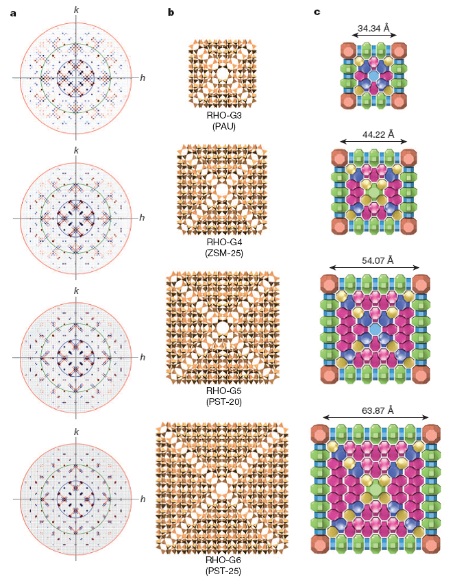 预测和合成新型晶体结构,使得定向制备具有理想性质的材料成为可能。在多孔材料中,金属-有机骨架(MOF)已经实现了这一点,不过对于应用更广泛的沸石类材料却还没到达这一步。Guo 等人报道了一种方法,将结构解析与结构预测结合起来,定向合成具有超复杂结构的沸石材料。他们首先用电子衍射技术解析了 ZSM-25 沸石的晶体结构,并测定了它对 CO2 的吸附能力。进而,他们预测并合成出结构类似但更为复杂的沸石材料,这是迄今为止首次合成出来的一类材料。(Nature doi:10.1038 / nature 14575 )