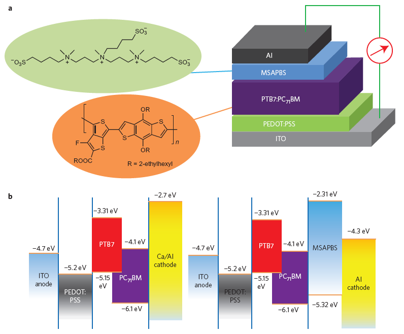 (Efficient polymer solar cells employinga non-conjugated small-molecule electrolyte)