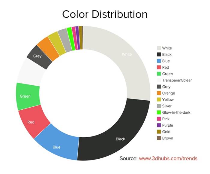 打印耗材以白黑两种颜色为主,并且黑色需求出现增长。这两种颜色的打印材料占据了所以得50%以上。
