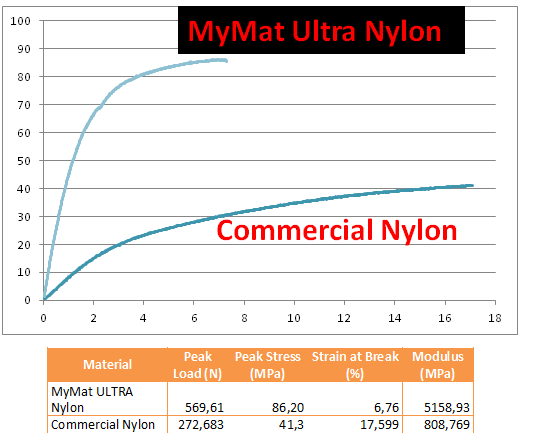 MyMat公司表示,Ultra Nylon非常适合于重型制造领域,比如汽车、航空航天,以及3D打印无人机等等。它的最佳打印设置为:0.4mm口径喷嘴270,或更大口径喷嘴250