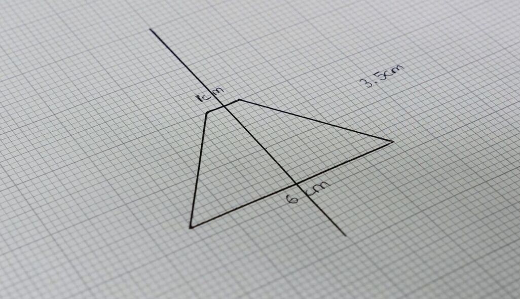 第一步:画图。在方格坐标纸合适的位置画上坐标——高1cm,下底长为6cm,高为3.5cm的等腰梯形。