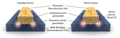 为了进一步分析,Zheng制备了两种新型等离子装置,每一种装置包含有等离子金纳米线,负于半导体层上。首先,金纳米线置于半导体材料上,制造肖特基势垒;然后再使得所有电子可以顺利通过。“该实验表明确实有一些电子比其它电子更热。我们也发现热电子并不是完全同吸收相关,而是与另一种机制相关,叫做场强增强机制。”Halas认为,“这对于进一步实现太阳能光伏电池等离子技术是非常重要的一步。该研究为提高等离子热载流子装置的效率提供了一种新的路径,同时也表明其对于将太阳能转化为有用的电能有非常重要的作用。”