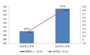 (2)2015年上半年,29家组件企业合计销售收入与净利润分别同比增长8.9%与9.7%。
