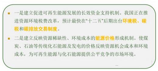 1.可再生能源补贴发展现状:可再生能源电价附加作为唯一支撑整个可再生能源发展的来源,财政部已把所有其他专项资金停发。可再生能源电价附加在国家增加的电价里面占30%左右。