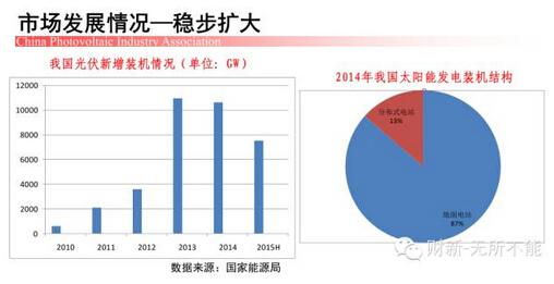 (3)据不完全统计,2015年上半年,A股上市公司光伏概念股中,被用于光伏电站的募集金额就达到260亿元,电站规模达到3GW。