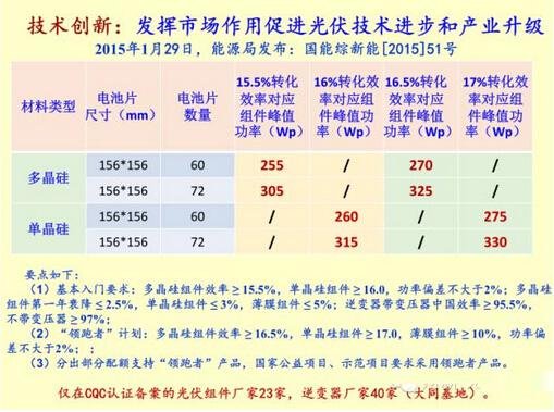 内部环境:①“光伏领跑者计划”,有利于进一步提高相关企业建立技术优势的意识,将会推动全行业的技术升级。今年下半年将有多个光伏“领跑者”计划示范基地陆续获批;②《光伏制造行业规范条件(2015年本)》对现有技术设置了门槛,淘汰落后技术,鼓励技术升级。
