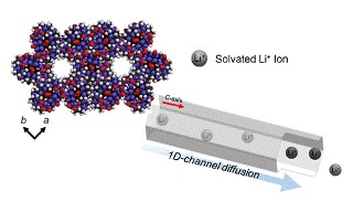 新开发的电池由南瓜形状的分子构成,该分子被称为cucurbit[6]uril(CB[6]),以蜂窝状结构分布。分子构成极薄的平均直径为7.5埃的一维通道[单个锂离子约0.76埃或0.76×1010 m]并在其间传递。此外,多孔CB[6]的物理结构可以使锂离子比传统的锂离子电池更自由地扩散,并不需要其他电池中的分离器。