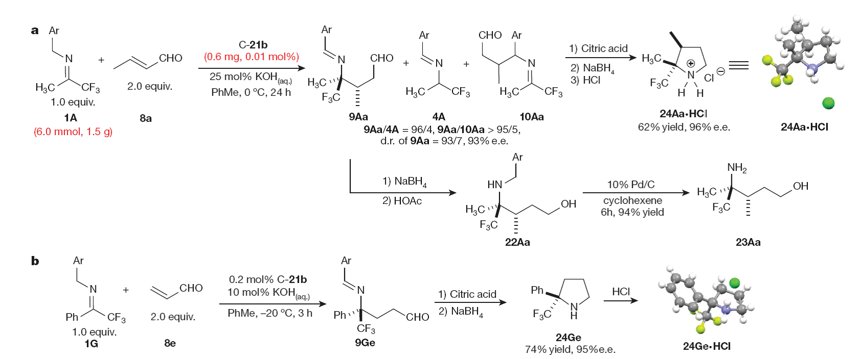 在有机化学中,亚胺类化合物中的碳氮双键是一类非常重要的官能团。这主要是因为亚胺基可以作为亲电试剂进攻碳亲核试剂,形成碳-碳键。这类反应无论在有机合成或是在药物合成中都有非常广泛的应用。不过如果亚胺基中的碳原子可以富电子,那么亚胺基同样也可以作为亲核试剂,这将催生很多新的反应生成。 Wu 等人开发了一种新型的手性相转移催化剂,可以高效催化亚胺基的不对称极性反转反应。这类反应的容忍性很强,可在有水份和氧气的环境中发生。这种极性反转反应为制备手性胺类化合物提供了新方法。(Nature doi: 10.1038 / nature 14617 )